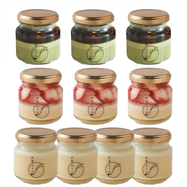 冬ギフト 芦屋ぷりん 3種10個入 (カスタード4個&芦屋川プリン3個&いちごぷりん3個 )